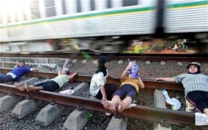 Impact Lab > Crazy Stuff > ‘Track therapy’ – Indonesians risk lives in latest health craze > indonesia-train