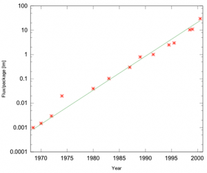 Impact Lab > Analysis > Haitz’s Law: Moore’s Law for LED lightbulbs > led-haitz-law-graph