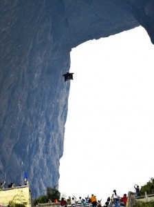 Impact Lab > Crazy Stuff > Wingsuit stuntman flies through narrow hole on side of mountain > wingman