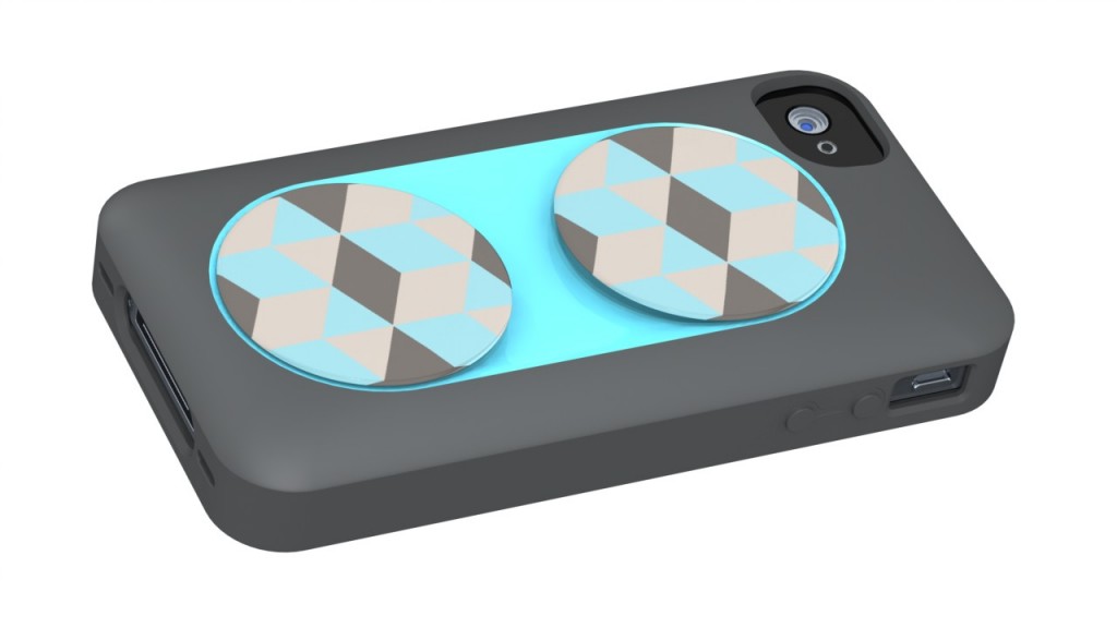 The case has two expanding sockets that function as a kickstand, a headset management system, a pocketless clip, a gaming cradle, a shoulder stand, and a one-hand stand. The sockets are replaceable and come in a range of designs, so it’s easy and fun to control the look of the case. (more photos after the jump…)