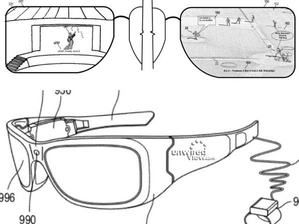 Microsoft’s glasses seem to utilize augmented reality. In a patent illustration we’ve embedded below, you can see that the glasses put data on top of a live action concert and a ballgame.
