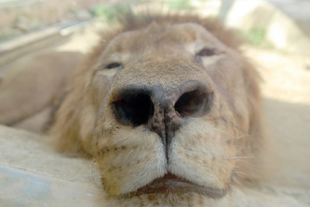 Curious lion. Well, maybe not THAT curious!