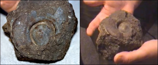 Even more surprising were laboratory analyses which not only revealed that the petrified wood contained carbon (proving it was once wood) but there were iron nails (above) embedded in the wood!