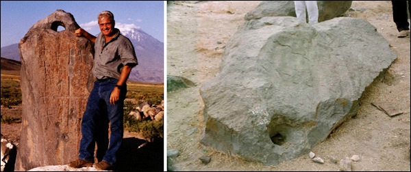 Several miles from the location of the Ark, huge stones were discovered, some standing upright while others lying on the ground. These stones, weighing many tons, have holes carved in them. Scientists have determined that they were anchors and the holes would have been their attachment to a ship with hemp rope.
