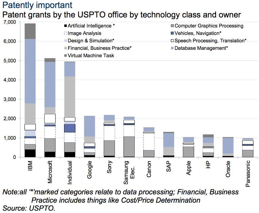 Other big patent players in the space include Microsoft, Google, and SAP.