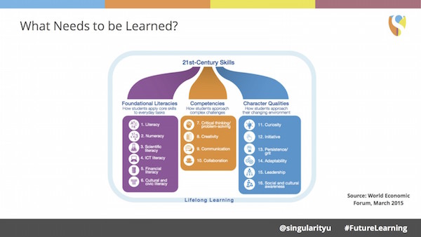 Nicole Wilson, Singularity University’s vice president of faculty and curriculum believes education technology is currently in a phase of deceptive growth, and we are seeing the beginning of how exponential technologies are impacting 1) what we need to learn, 2) how we view schooling and society and 3) how we will teach and learn in the future.
