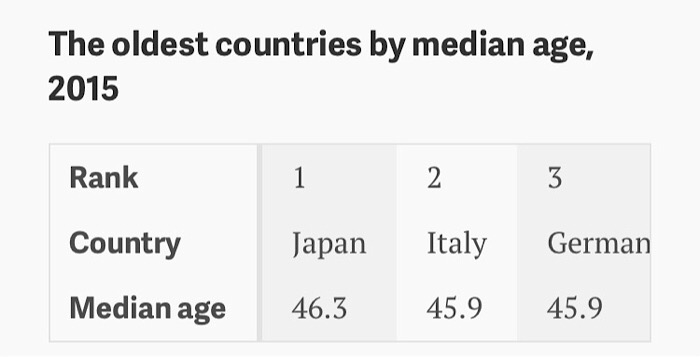 Today, Japan is a land of aging baby boomers and young adults who don’t want to have kids. By median age, Japan is the oldest large country in the world. More than half of its population is over the age of 46. By comparison, in Nigeria, just over a tenth of the population is over that age.