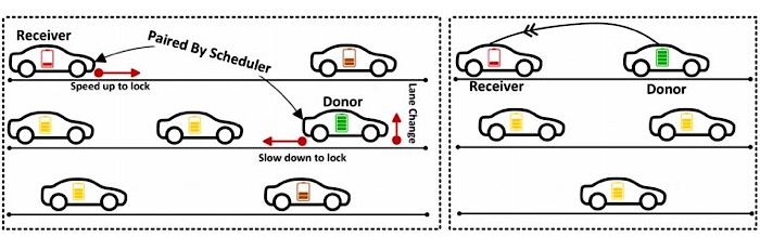 Professor Bhunia describes the Mobile Charging Stations as “high battery capacity vehicles that are used to replenish the overall charge in the vehicle networks.” The MoCS would augment the capacity of P2P charging when it might be difficult to borrow juice from a fellow EV driver. The paper’s illustration shows that mobile charging stations might utilize drones.