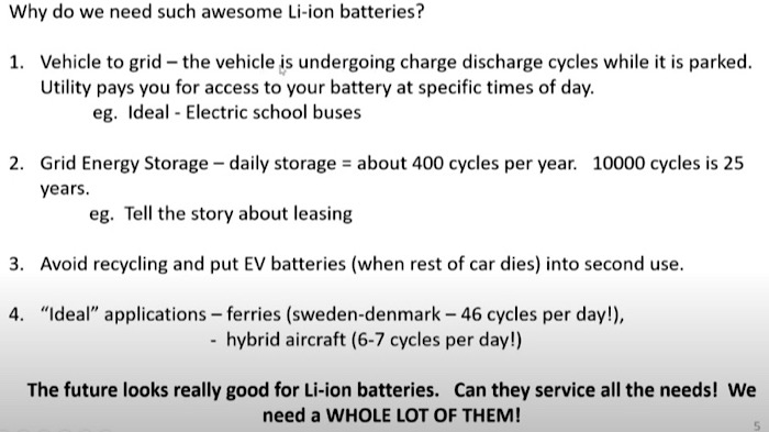 Dahn brought up several other interesting potential uses of batteries with extreme longevity and briefly commented on Tesla’s “Battery Day” in the presentation: