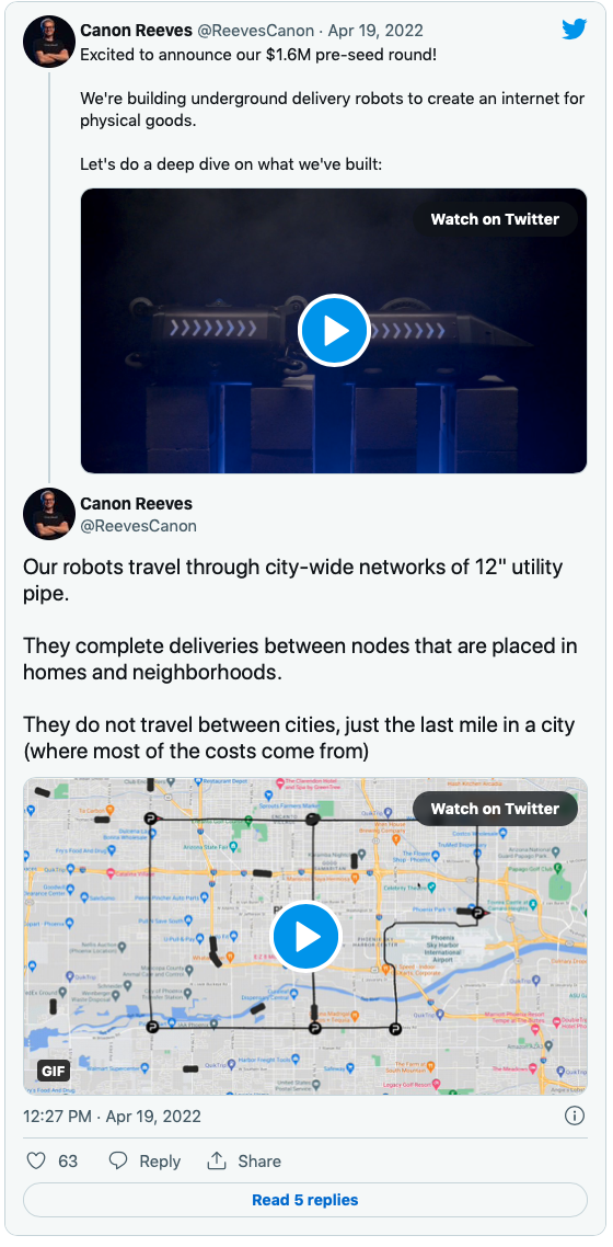 Or maybe Pipedream’s vision of super-fast underground hyperlogistics won’t turn out to be just a pipe dream.