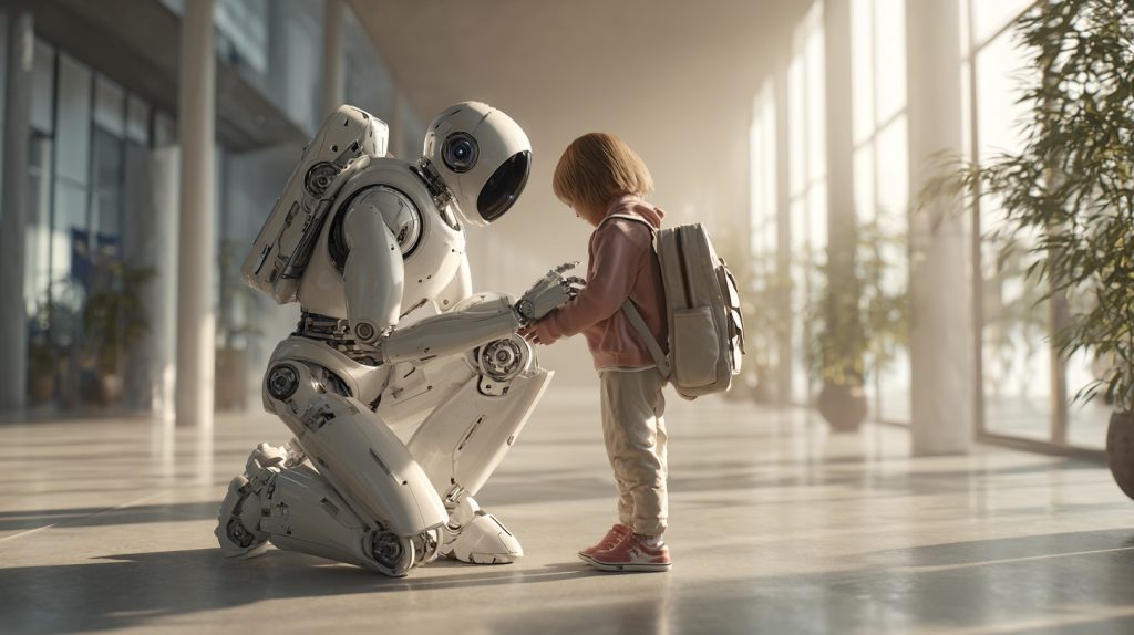Robot caregivers handle the mechanical aspects: feeding, basic education, health monitoring, transportation. But mothers provide what robots can’t: emotional bonding, human connection, love. “My robot can teach my kids math better than I ever could,” explains Ashley Willows. “But it can’t be their mom. That’s my job.”