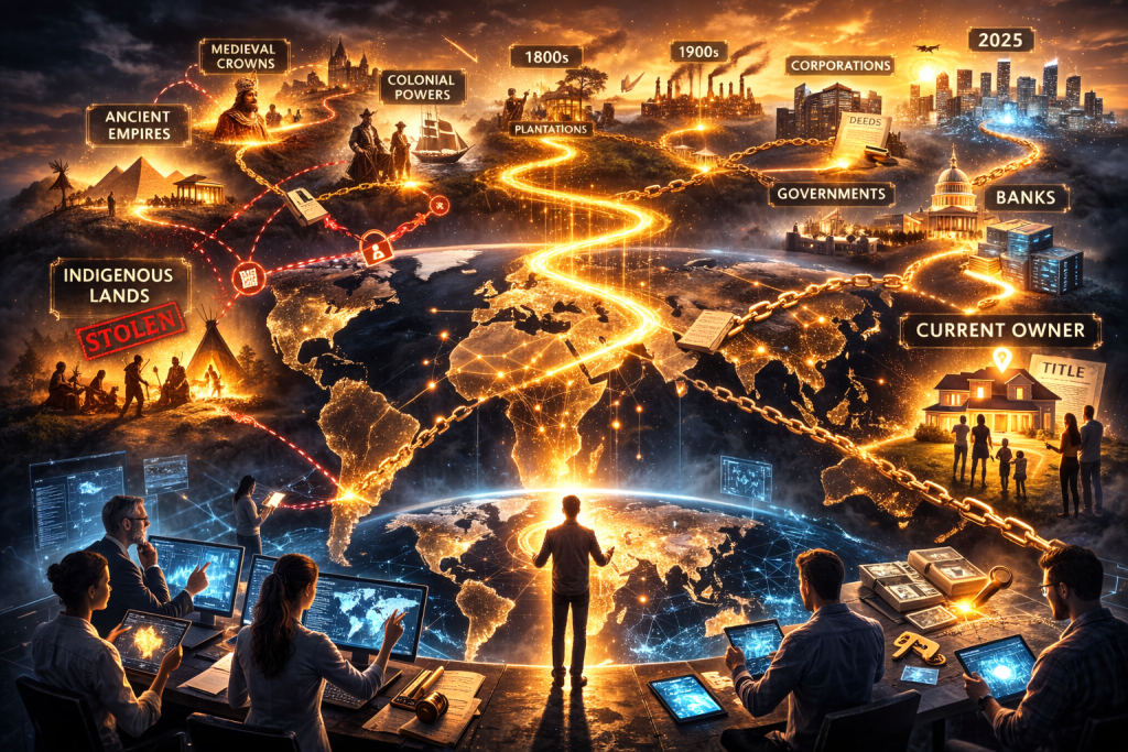 The Whole Earth Ownership Project makes this concrete. Complete chains of transfer for every asset on Earth. Art looted by Nazis. Land seized from indigenous peoples. Wealth extracted through colonialism—all traceable.